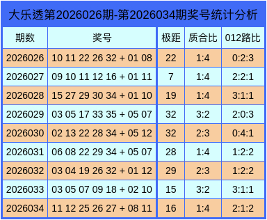 上期回来:大乐透第2026034期回来:前区11、12、25、26、27 + 后区08、11。