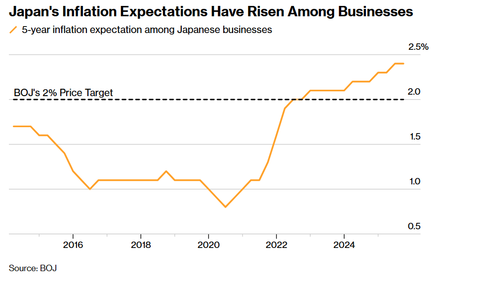 如上图所示,日本企业通胀预期也曾权臣上升。