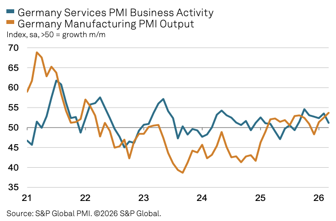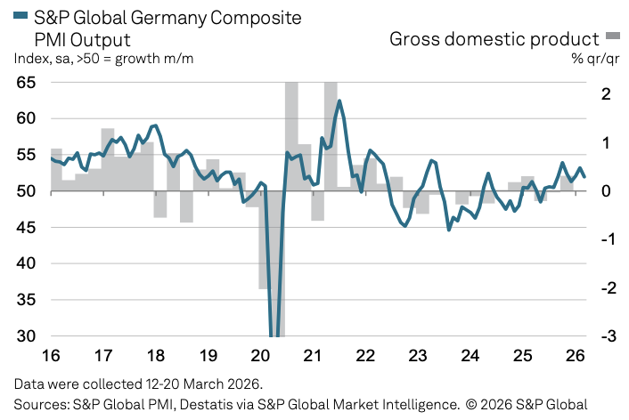 标普专家经济学家Phil Smith劝诫,"制造业产出预期已被下调,这意味着工场举止的激增很可能是斯须的。"德国此前正因财政支拨发力而处于经济拐点前夕,此号外部冲击令复苏势头再度受阻。