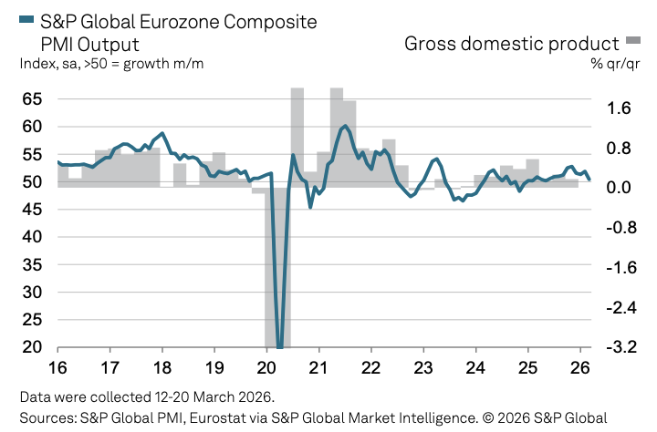 欧元区私营部门举止在3月急踩刹车,详尽PMI降至10个月低点,滞胀风险警报拉响。制造业的未必反弹未能对消工功课的全面走软,而中东往来激勉的动力价钱飙升与供应链压力正从根蒂上重塑欧洲经济出路。