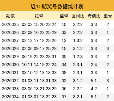 重号数据:最近50期重号出现了42期,重号期数占比为84.00%,共开出70个类似红球;最近10期有10期包含重号,共开出19个重号红球,上期重号开出03,13,本期展望重号开出03,23。
