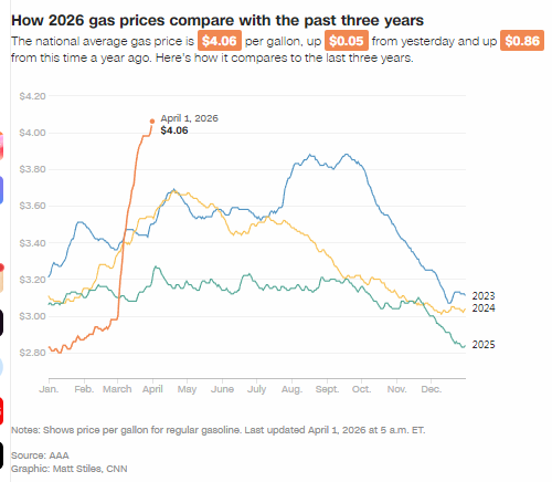 2026 年 3 月 31 日,好意思国纽约曼哈顿区的一家加油站。