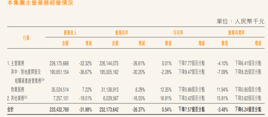 从分业务类型的毛利率来看,万科企业的主商业务包括“房地产设置及相关钞票标的”和“物业干事”,两者的营收占比分裂为81.7%和15.2%,毛利率分裂为-2.3%和12.3%。
