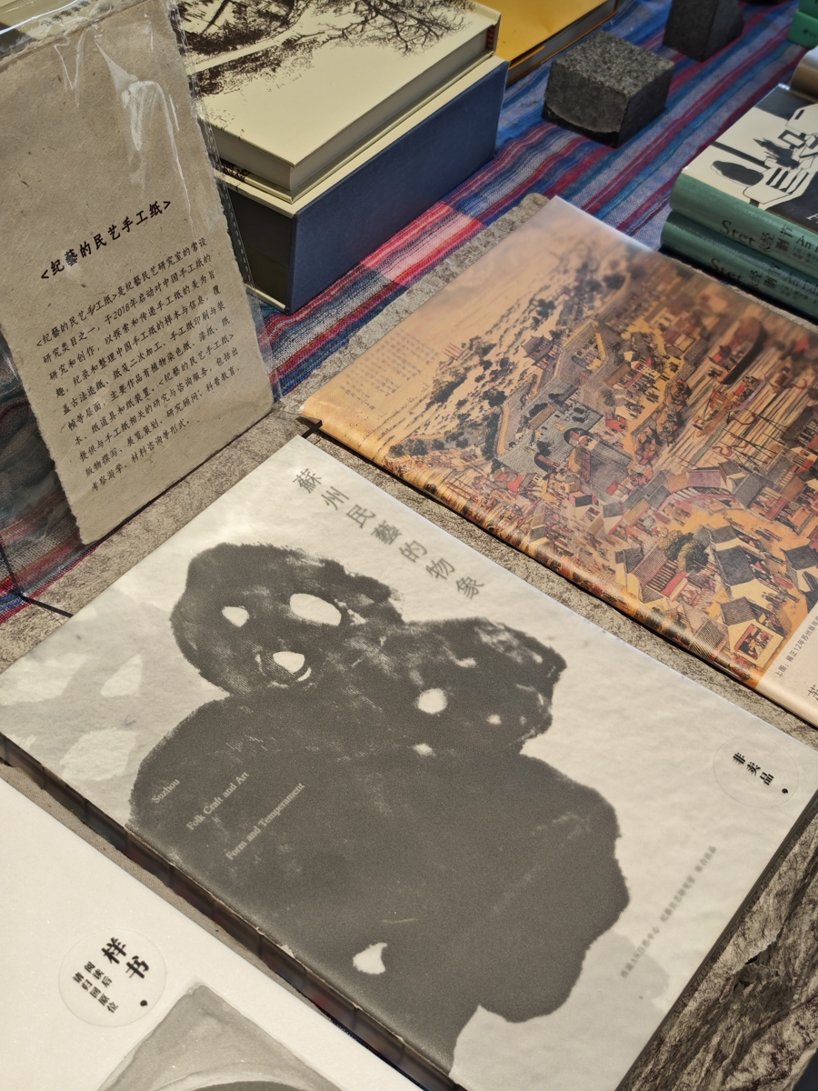 “磁力大蒜”旁,装帧概括的手工纸亦然这样来的。其时,书店团队专门去苏州探问了专注于中国手工纸商讨和创作的民艺职责室。比起谈协作,更像是“同好换取会”。最终,与手工纸家具一同总结的,还有一册凝华了职责室心血的出书物,它被摆放在书店C位展示。