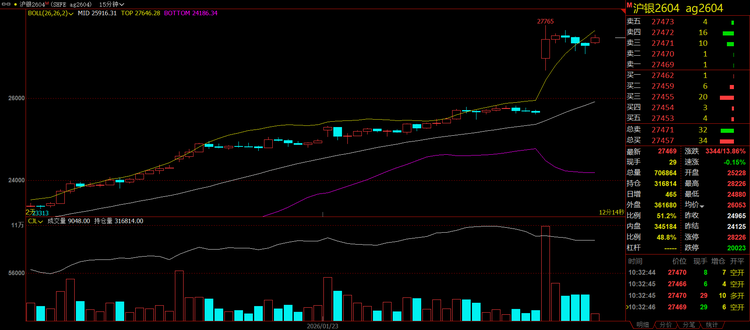 1月26日,贵金属市场迎来了历史性的爆发时刻,现货白银日内涨幅超过5%,触及每盎司108.53美元的纪录新高,沪银主力合约更是暴涨14.00%,报价攀升至27280元/千克。与此同时,现货黄金日内暴涨100.53美元,最新报5086.66美元/盎司,涨幅2.02%。 现货铂金上涨逾3%,创下每盎司2862.25美元的纪录新高。现货钯金亦涨超3.4%,最高至每盎司2086.45美元。