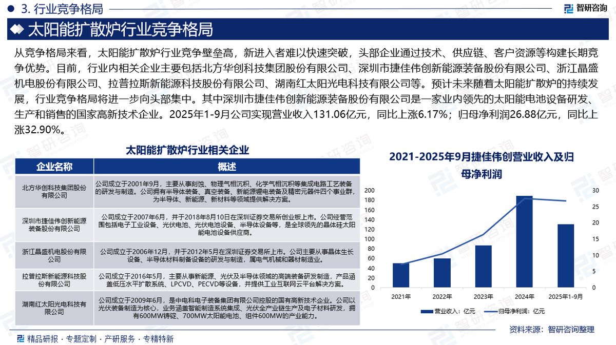基于此,依托智研猜想旗下太阳能扩散炉行业斟酌团队深厚的市集瞻念察力,并伙同多年调研数据与一线实战需求,智研猜想推出《2026-2032年中国太阳能扩散炉行业市集发展范围及投资趋势研判敷陈》。本敷陈藏身太阳能扩散炉新视角,聚焦行业中枢议题——变化趋势(若何变)、用户需求(要什么)、投放遴荐(投向哪)、运营款式(如何投)及实践案例(看一看),期待联袂行业伙伴,共谋行业发展新口头、新机遇,激动太阳能扩散炉行业发展。