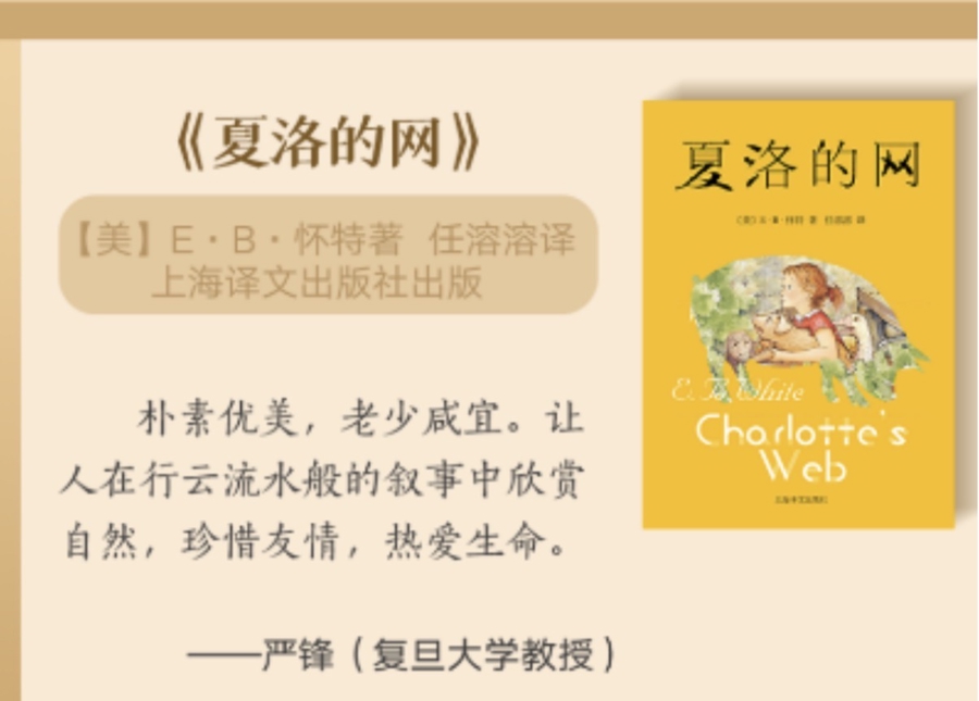 在此布景下,对经典儿童文体的价值信守尤为热切。上海译文出书社推出“新版怀特作品三部曲”,恰是对这一问题的积极恢复。