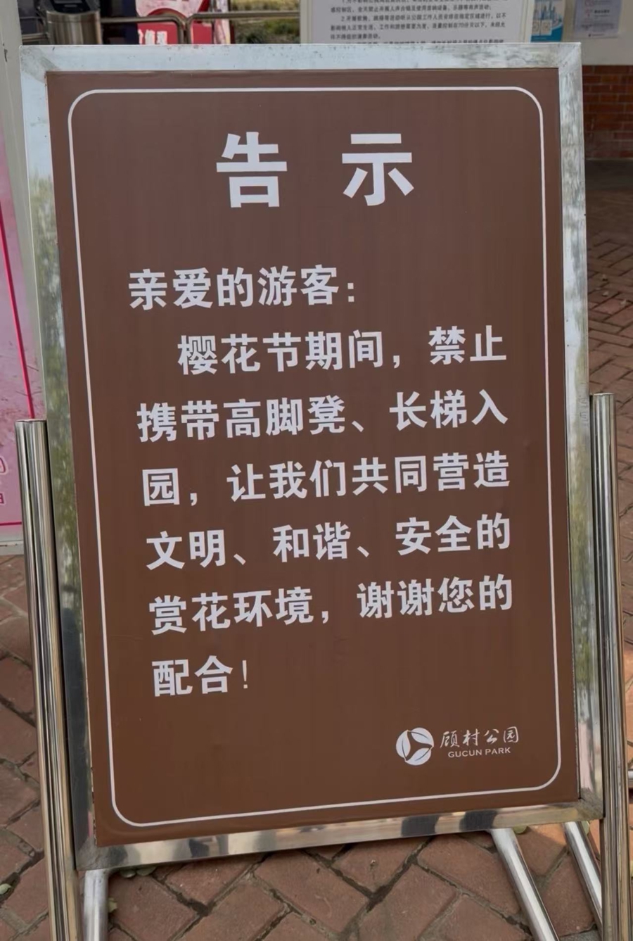 天气和暖,3号门隔邻的早樱已接近尾声,2号门隔邻的樱花成为了园内的“主角”,眩惑宽阔赏花市民。一块写有“温馨辅导”的书记牌被摈弃在2号门进口处,红色字形体外预防,写明“请勿私设长梯、高脚凳等隐敝他东谈主视野,请勿未经许可摆摊影相,请勿拥挤谈路影响他东谈主通行”。记者把稳到,园内多处东谈主流密集处王人有访佛书记牌。在公园3号门外还摈弃有《对于进一步优化游园环境的公告》的立牌,一旁的《书记》则再次强调,樱花节时刻回绝佩戴高脚凳、长梯入园。